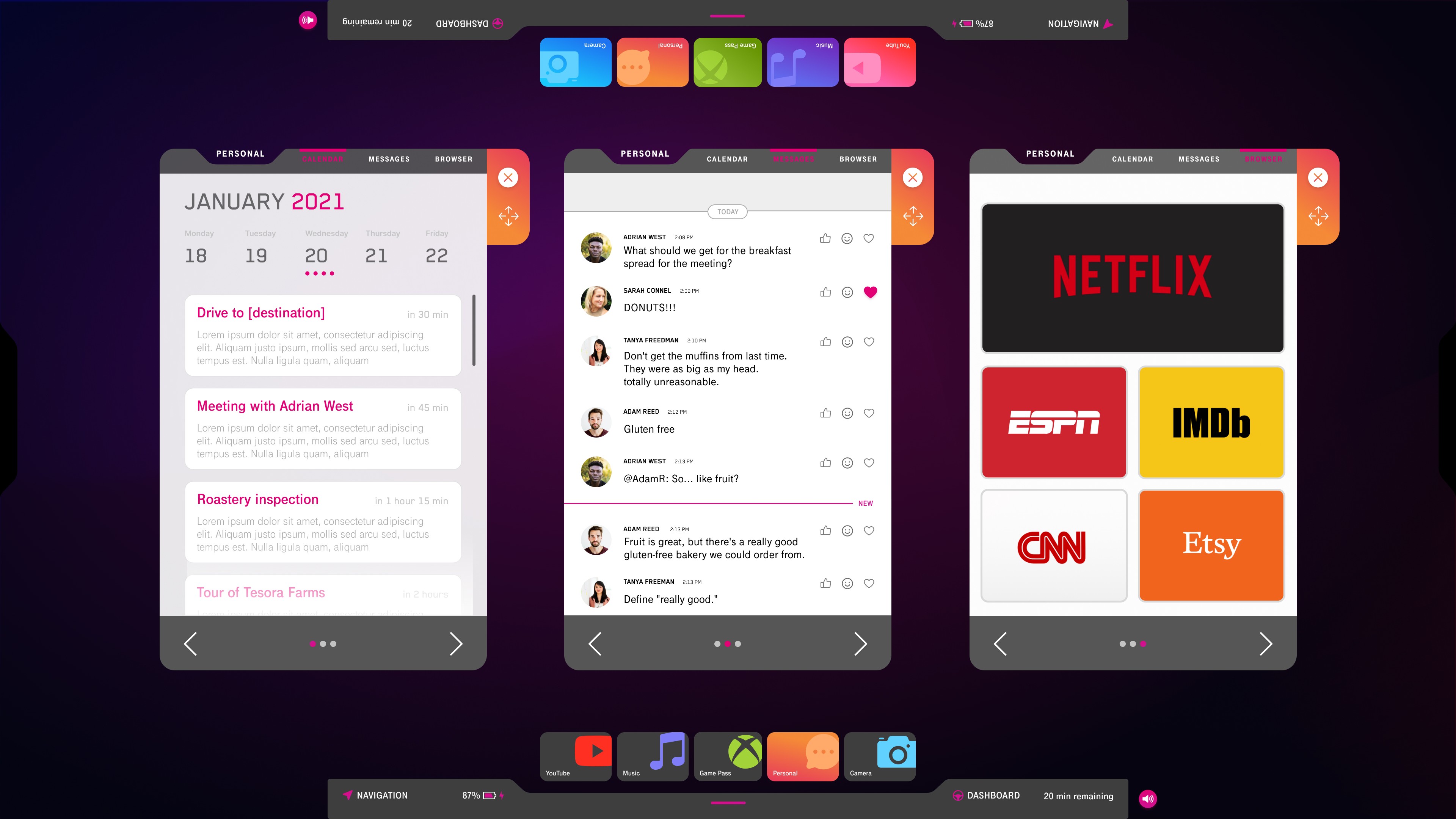 Visitors would experience five separate products bolted into one space. A tap in the retail demo needed to behave the same as a tap in the vehicle. Icons needed to have the same meanings. Navigation had to work the same way here, as over there. The any inconsistency would destroy the sense of a unified 5G future.