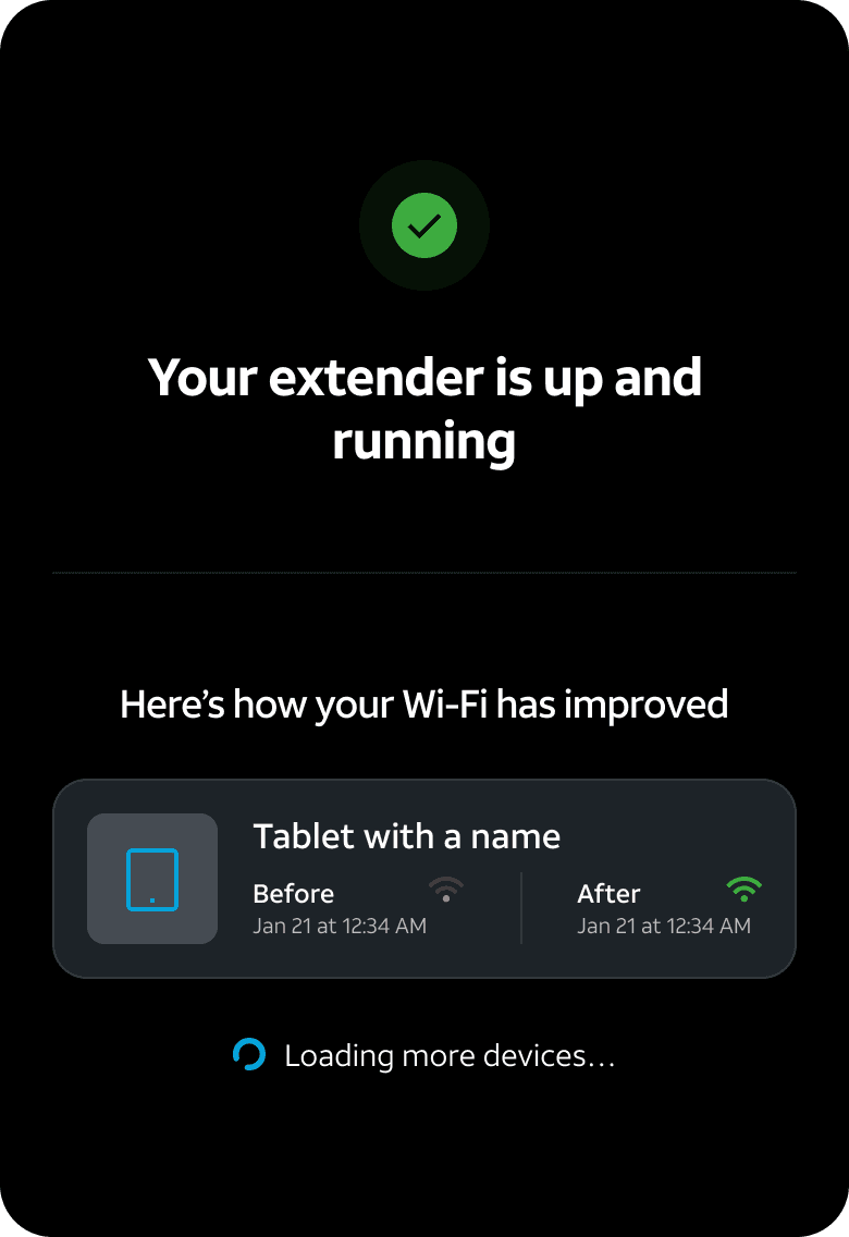 An AR-based Wi-Fi signal mapping experience that lets customers walk their home and see signal strength overlaid on their space in real time. The tool analyzes the coverage map and recommends a specific placement location for the extender based on where the dead zones actually are. Customers get a guided install path rather than a guess, and the result is measurably better coverage from day one.