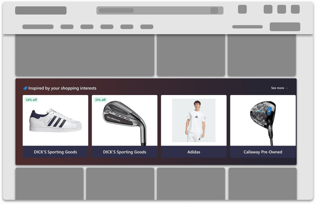 Ads on Microsoft's own surfaces, Edge's New Tab page and the Windows Start feed, were static, generic, and increasingly invisible. They pulled from advertiser data feeds and arranged content in rigid, one-size-fits-all templates with no awareness of the person seeing them.